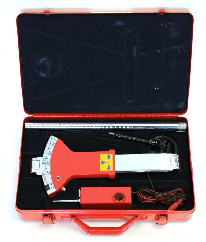 Sumaryczny luz układu kierowniczego mierzony jest w stopniach obrotu kierownicy. Na kierownicy badanego pojazdu mocowana jest specjalna nakładka z podziałką kątową. Do nieruchomej części kabiny samochodu np. szyby przedniej mocuje się stały wskaźnik, który umożliwia odczytanie kąta ruchu jałowego kierownicy. Dla stwierdzenia początku ruchu koła , w przyrządzie zastosowano czujnik ustawiany bezpośrednio przy kole kierowanym samochodu. Uruchamiany mikro wyłącznikiem czujnik pozwala wykryć ruch skrętny koła już o wartości 0,35 mm.